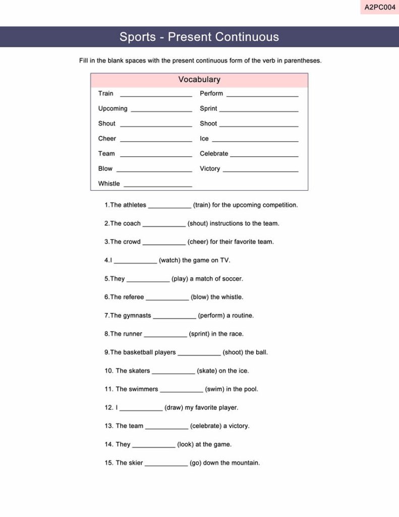 Present Continuous Worksheet – M-A1PC003 / ESL EFL Classroom materialJanuary 24, 2023The Present – B1 Video Lesson – ESL EFLJanuary 25, 2023 Published by Toony on January 24, 2023 Categories Free Present Continuous Tags M-A2PC004 and Answer Key 1 file(s) 560.11 KB Download Related posts: Present Continuous Worksheet – M-A1PC002 / ESL EFL Classroom material Present Continuous Worksheet – M-A2PC006 / ESL EFL Classroom material Present Continuous Worksheet – A2PC008 / ESL EFL Classroom material Present Continuous Worksheet – A2PC009 / ESL EFL Classroom material Present Continuous Worksheet – A2PC010 / ESL EFL Classroom material Share Toony Comments are closed.